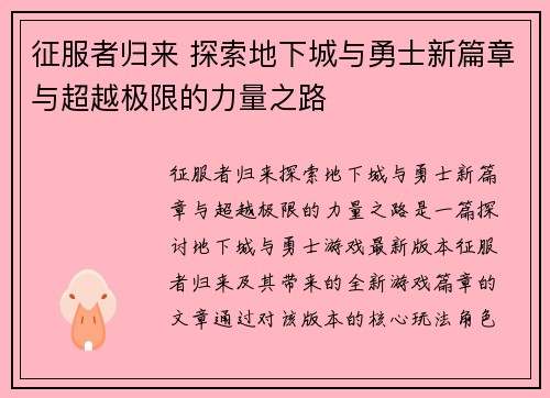 《火柴人冒险:穿越奇幻世界挑战极限生死逃亡之路》是一部充满刺激与创意的冒险故事,围绕火柴人角色展开,在一个奇幻的世界里进行极限逃亡挑战。故事中的火柴人面对一个又一个严酷的考验,不仅需要智慧与勇气,还要依靠不屈不挠的决心和不断适应变化的能力来突破生死的边缘。在这个充满奇幻与神秘的世界中,火柴人不仅要面对致命的陷阱、恐怖的怪物、以及超自然的力量,还需要经历心灵和身体的极限考验。这篇文章将从冒险的背景设定、游戏的设计理念、挑战的内容与难度、以及火柴人角色的成长与变化四个方面,深入剖析《火柴人冒险:穿越奇幻世界挑战极限生死逃亡之路》这款游戏的魅力与价值。